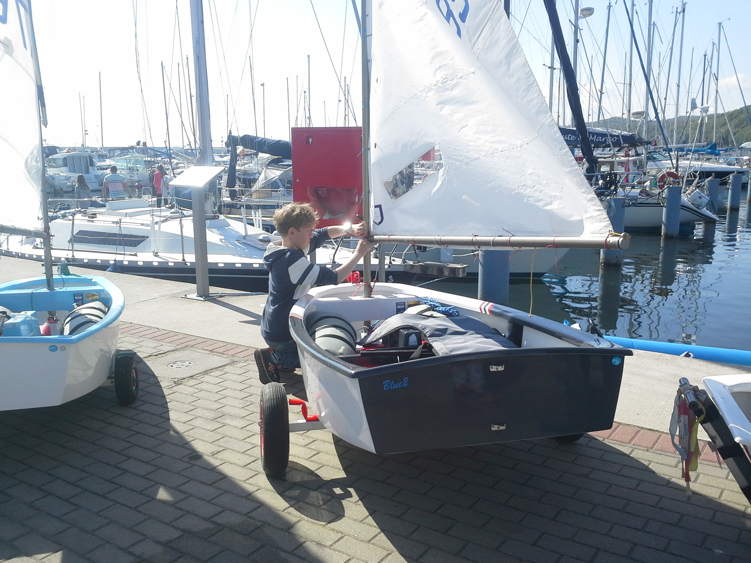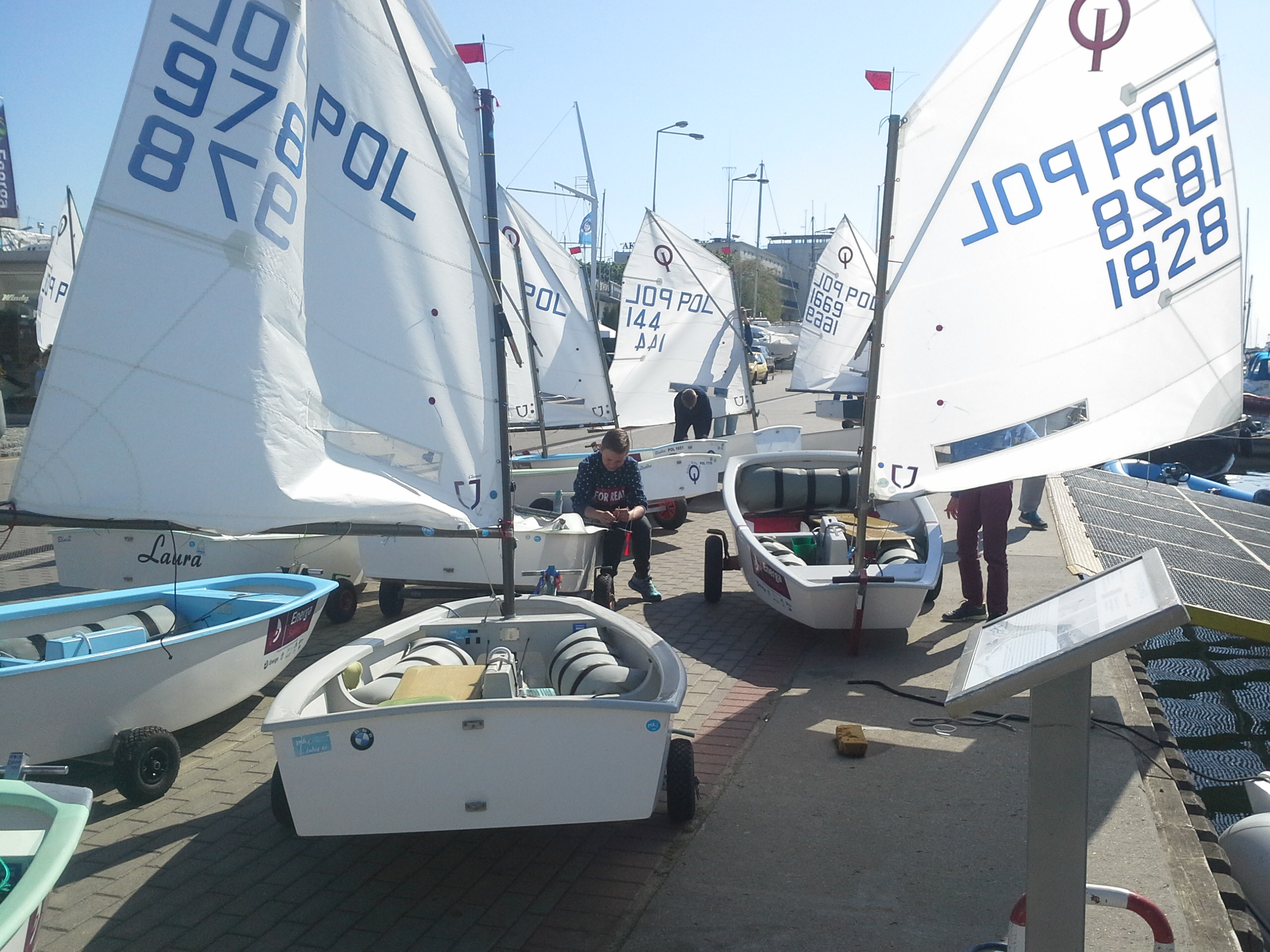 Słoneczna pogoda wita żeglarzy przybywających do Gdyni na kolejne regaty z cyklu Energa Sailing Cup. W porcie pojawia się coraz więcej białych żagli optimista. Zawodnicy przygotowują przywieziony sprzęt do zawodów.