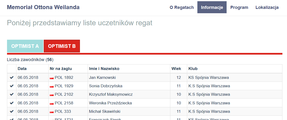 Aktualna lista zawodnikow dostepna na www.charzykowy.sailingnet.pl
